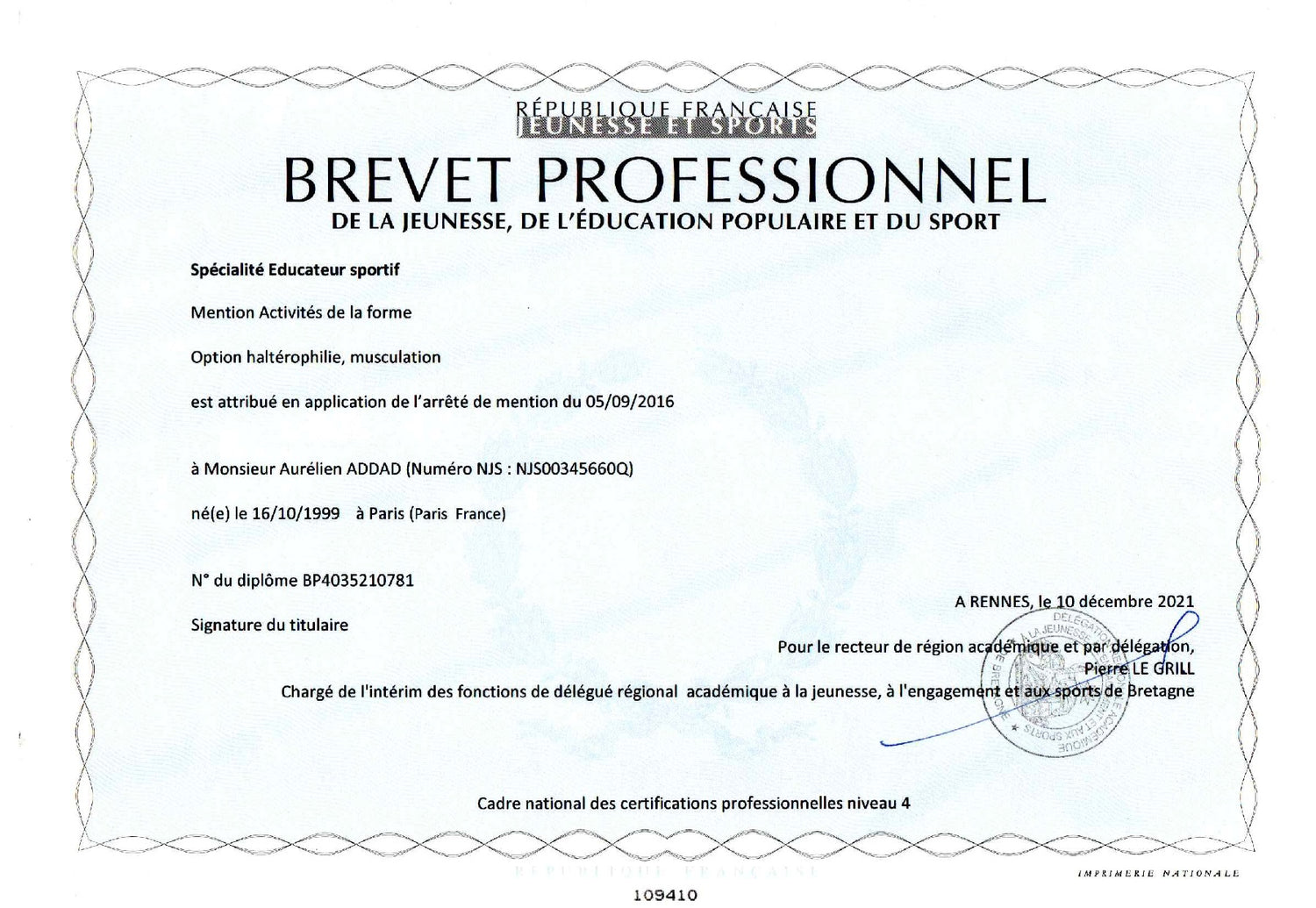 C'est ainsi qu'est née ma vocation : devenir coach sportif, pour transformer ma souffrance en force et prendre une revanche sur mon passé. Après un long cheminement, j'ai obtenu en 2021 le BPJEPS AF (Brevet Professionnel de la Jeunesse, de l’Éducation Populaire et du Sport, spécialité Éducateur Sportif), un diplôme d'État qui me permet aujourd'hui d'exercer en tant que coach sportif et d'accompagner d'autres personnes dans leur propre transformation.